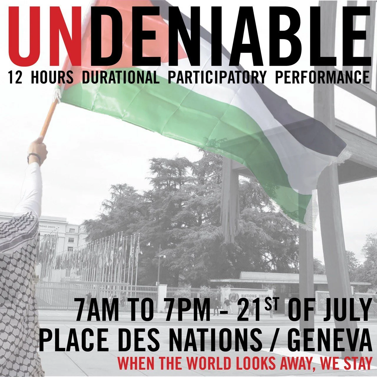 “UNDENIABLE” is a durational performance art piece manifesting the reality in Gaza. It reflects on collective human resilience, grief, oppression, and the weight of witnessing this particular situation. The work invites the public to engage with a physical meditation on the cost of conflict—conveyed not through words or spectacle, but through presence and stillness.